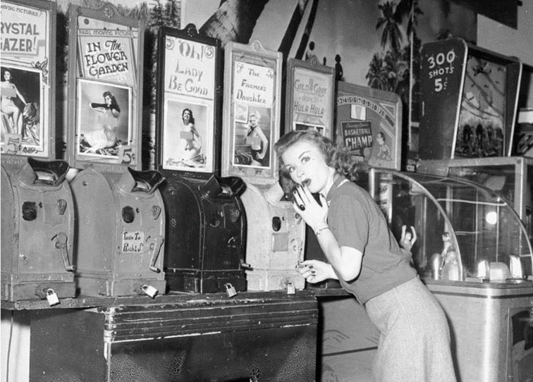 Mientras las imágenes sexuales en movimiento del cine mudo seguían creciendo, por su lado las fotografías de chicas mostrando con más atrevimiento sus encantos hacían de las suyas.