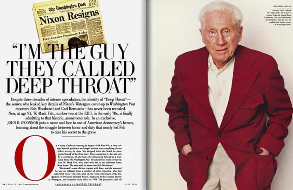 Mark Felt, exsubdirector del FBI, reveló el 31 de mayo de 2005 a la revista Vanity Fair, que había sido “Garganta profunda” la fuente secreta de los periodistas del The Washington Post que investigaron el caso Watergate.