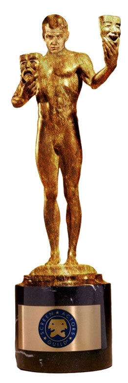 La estatuilla es la figura del ganador del premio Oscar, Jack Nicholson quien sostiene con sus manos las máscaras del Teatro.