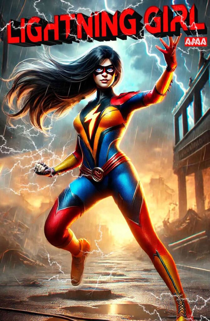 Chica Relámpago es la superheroína que al hacer girar su hermoso cuerpo atrae los relámpagos y estos la transforman, cambiando de apariencia y obteniendo superpoderes. En una de sus pruebas de prototipos, Natasha Gordon, encuentra a una moribunda extraterrestre que le entrega estos extraordinarios poderes. De esta manera es reclutada, para llevar a cabo una misión intergaláctica.