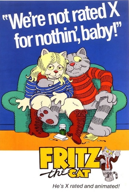 Fritz the Cat es la primera película animada en recibir una clasificación X por parte de la MPAA de los Estados Unidos en 1972, dirigida por el palestino, Ralph Bakshi. El filme está basado en el comic de Robert Crumb. Ver www.bakshistudio.com