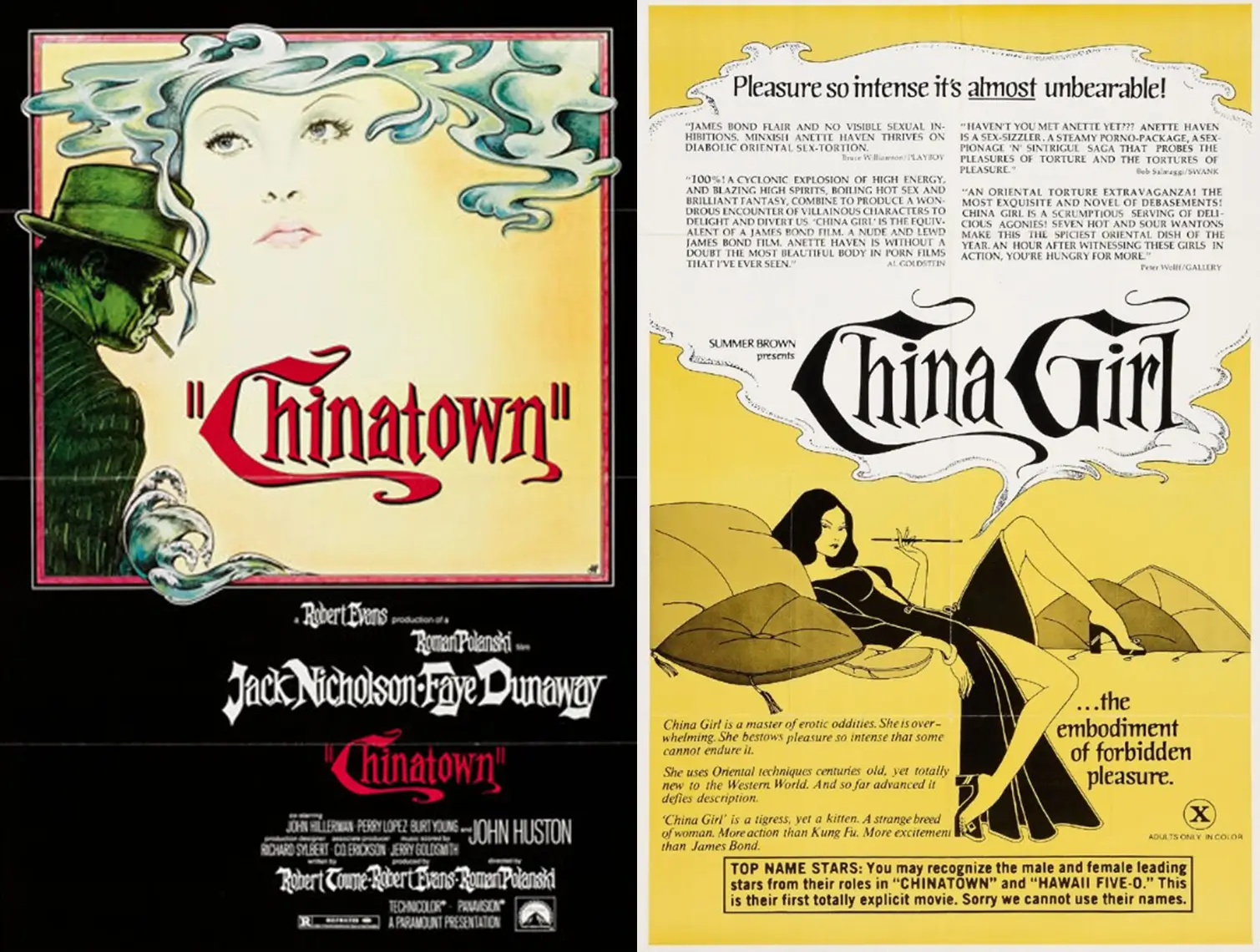Muchos afirman que China Girl -pionera en incluir kung fu en una película X- y Chinatown son unas de las mejores películas de ambas industrias, y no es difícil entender por qué. Está hecha con destreza, escrita magníficamente con excelentes actuaciones y locaciones. Chinatown y China Girl recibieron críticas positivas y colmaron las salas de cine.