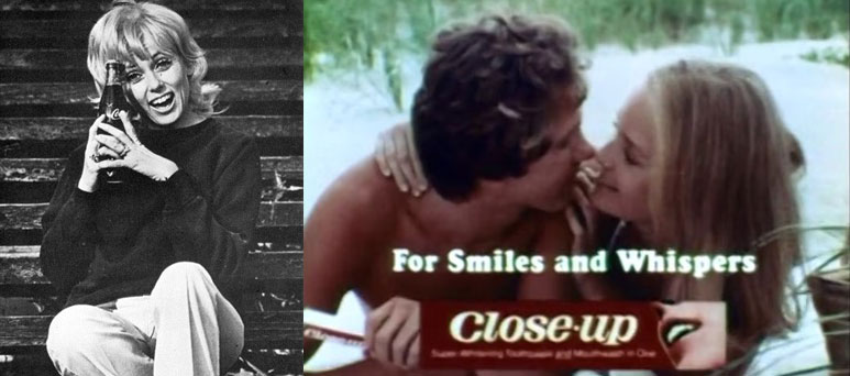 Ann-Perry modelo publicitaria de Coca-Cola. Eric Edwards comercial de televisión crema dental “Close-up”.