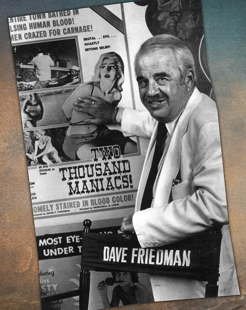 Herschell Gordon Lewis con la película Blood Feast (1963) pionero del cine Gore, fue miembro de la AFAA.